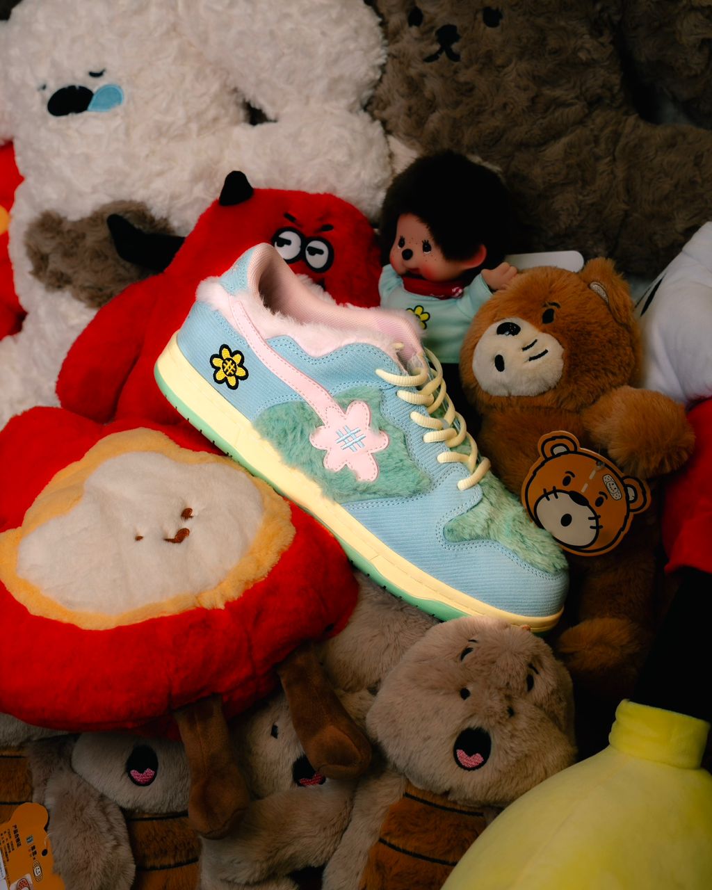 Every sneaker represents a different JOYJOY GANG character, designed with bold colours, playful graphics, and subtle details that live between optimism and edge — vibrant florals and yellows balanced with darker, moodier tones. Produced in limited quantities for our 5th Anniversary, these sneakers are made for collectors, culture kids, and anyone who believes buying shoes should feel exciting again.
